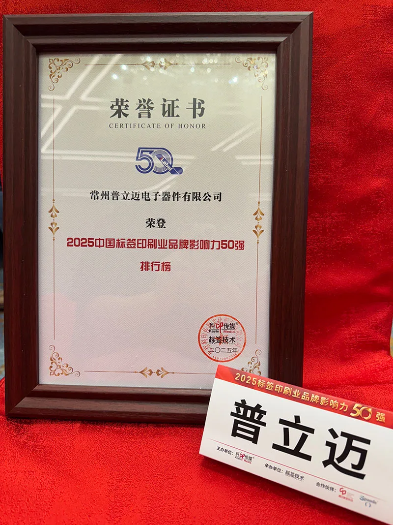 On July 3rd, the "2025 Top 50 Brands in the Label Printing Industry" award ceremony, themed "Digital and Intelligent Upgrades, Co-Creating the Future," was grandly held in Suzhou. CHANGZHOU PRAMERS ELECTRONIC COMPONENTS CO.,LTD, under the Langtie Group, stood out among numerous outstanding enterprises with its exceptional comprehensive strength and innovative achievements, once again earning the prestigious Top 50 industry accolade! This momentous news is a high recognition of our past efforts and serves as motivation for PRAMERS to pursue excellence and continuous progress!
