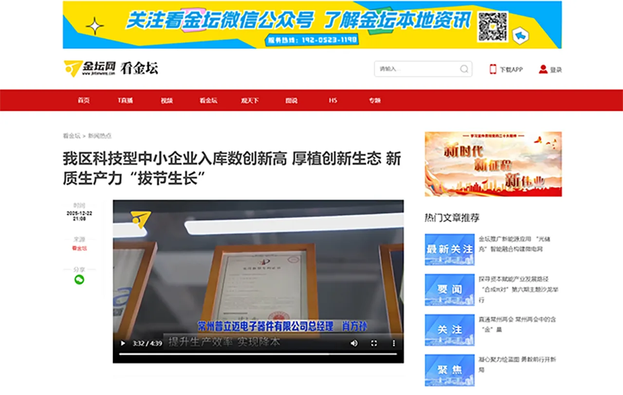 金坛区科技型中小企业入库数创新高 普立迈携域内新质生产力企业一同打造创新生态